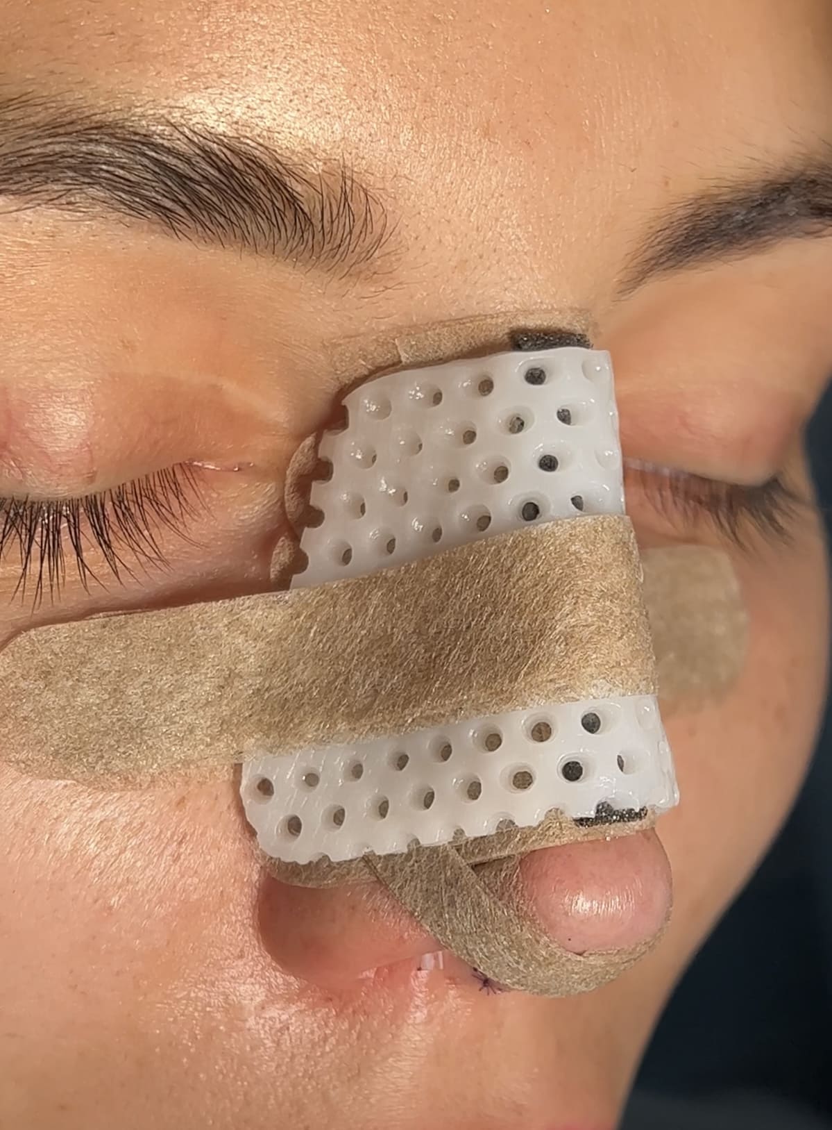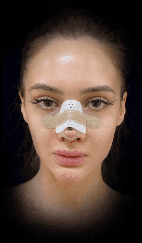- Нос снаружи будет заклеен гипоаллергенными пластырями телесного цвета ,а сверху будет приклеена Термопластина, которая защищает нос и сдерживает отёк.